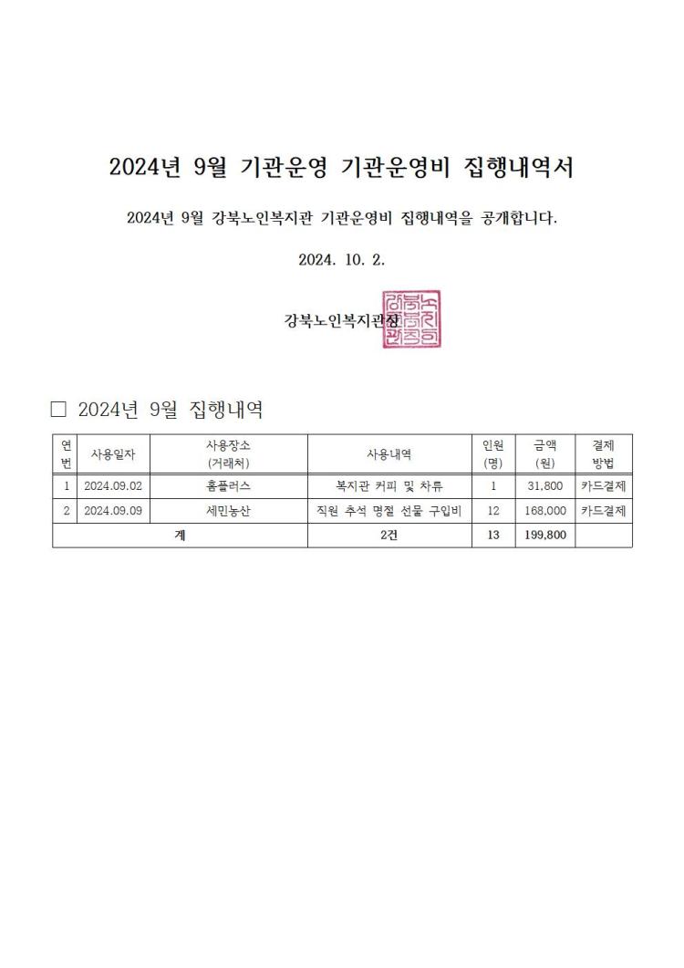 | °ºÏ³ëÀκ¹Áö°ü 2024³â 9¿ù ±â°ü¿î¿µºñ ÁýÇà³»¿ª °ø°³ |