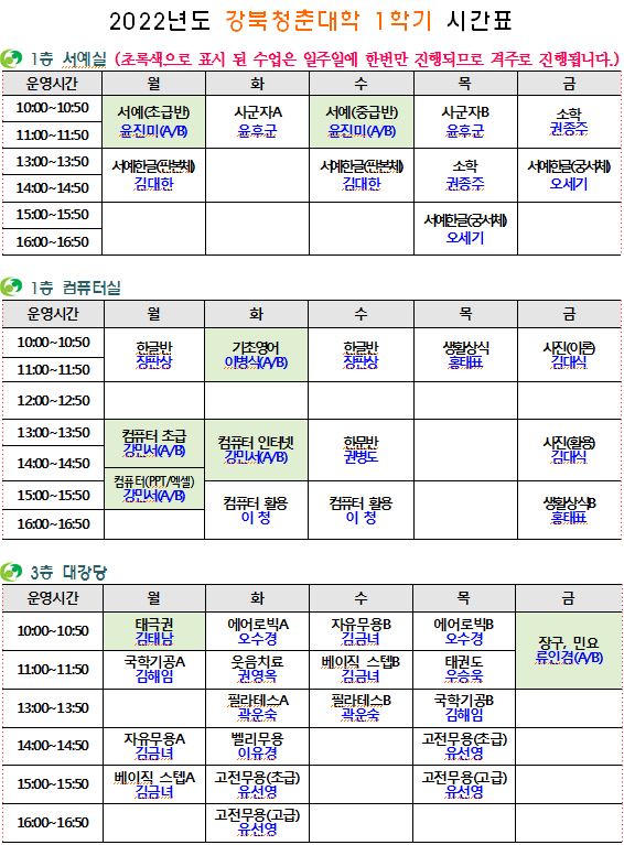 2022³âµµ 1Çб⠰ºÏûÃá´ëÇÐ ½Ã°£Ç¥ ¾È³»