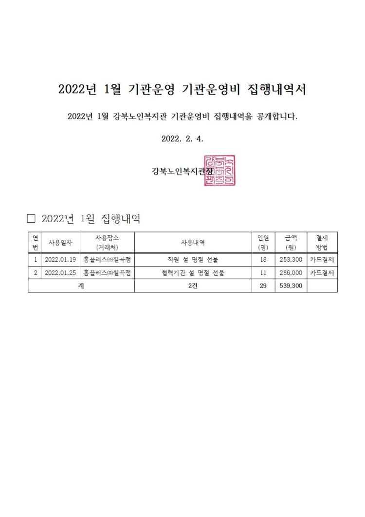 °ºÏ³ëÀκ¹Áö°ü 2022³â 1¿ù ±â°ü¿î¿µºñ ÁýÇà³»¿ª °ø°³