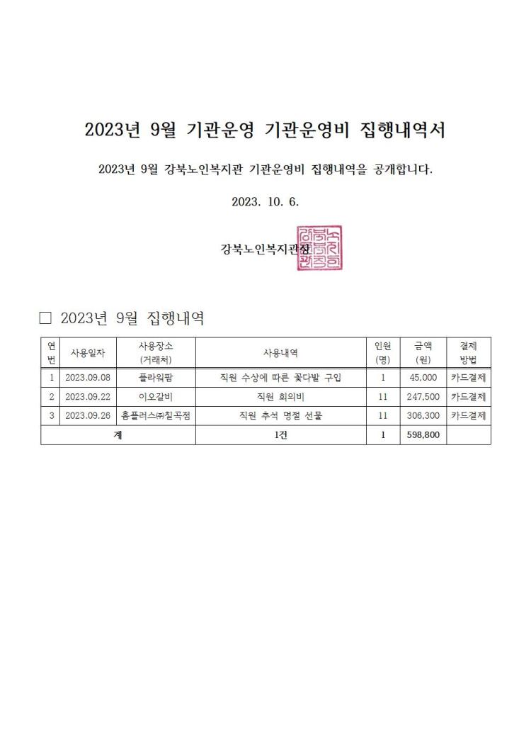 | °ºÏ³ëÀκ¹Áö°ü 2023³â 9¿ù ±â°ü¿î¿µºñ ÁýÇà³»¿ª °ø°³ |