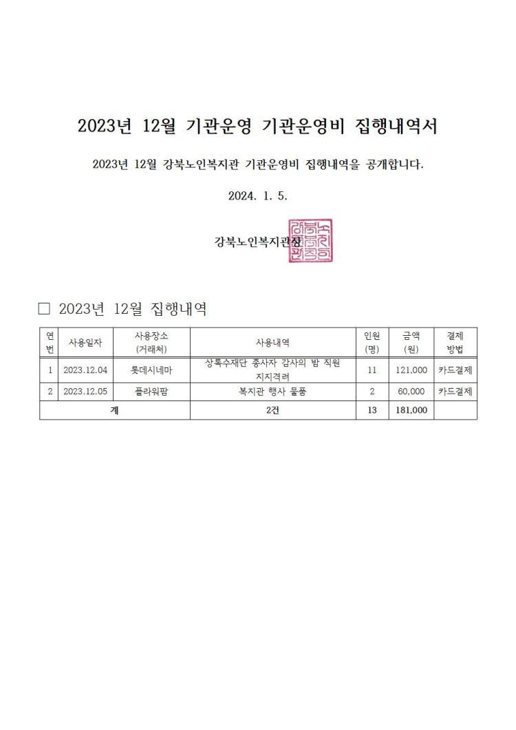 °ºÏ³ëÀκ¹Áö°ü 2023³â 12¿ù ±â°ü¿î¿µºñ ÁýÇà³»¿ª °ø°³